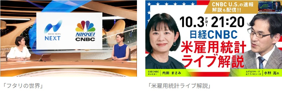 ▼「日経CNBC」でのテレビ放送、「日経CNBC online」でのライブ配信 一例