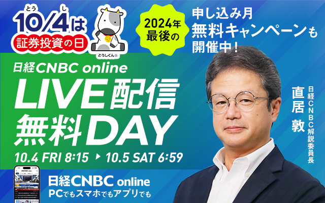 10月4日の「証券投資の日」は、日経CNBCの有料インターネット配信サービス「日経CNBC online」(月額1650円/税込)のライブ配信を無料開放いたします。