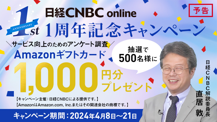 マーケット・経済動画配信サービス「日経CNBC online」はおかげさまで24年4月1日に開始1周年を迎えます。日頃の感謝の気持ちを込め、4月1日から様々な企画を実施いたします。