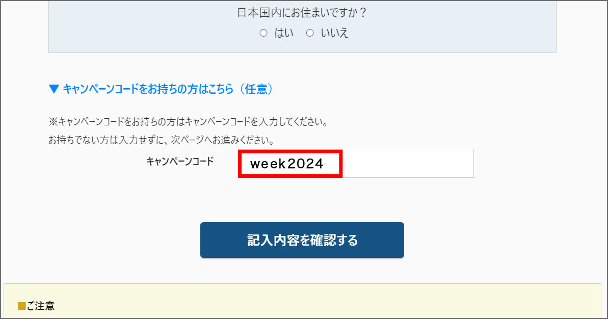 日経CNBC onlineのサービス利用登録の際、お支払情報の入力画面の下部にキャンペーンコードの入力欄があります。そこに半角英数小文字で「week2024」と入力のうえ、利用登録を行ってください。当キャンペーンコードは有効期限内(2024年9月30日(月)~2024年10月31日(木))に限り使用可能です。