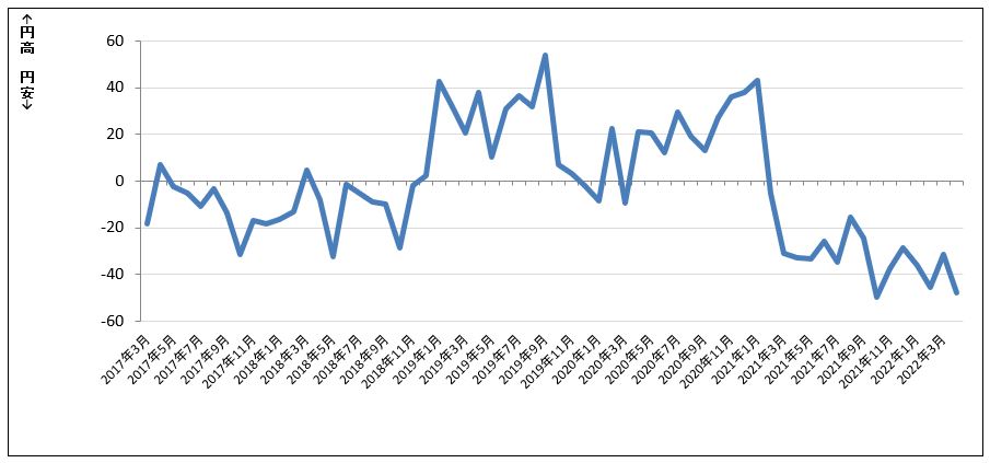 ■ドル円DI推移(※ドル円DI=円高ー円安)