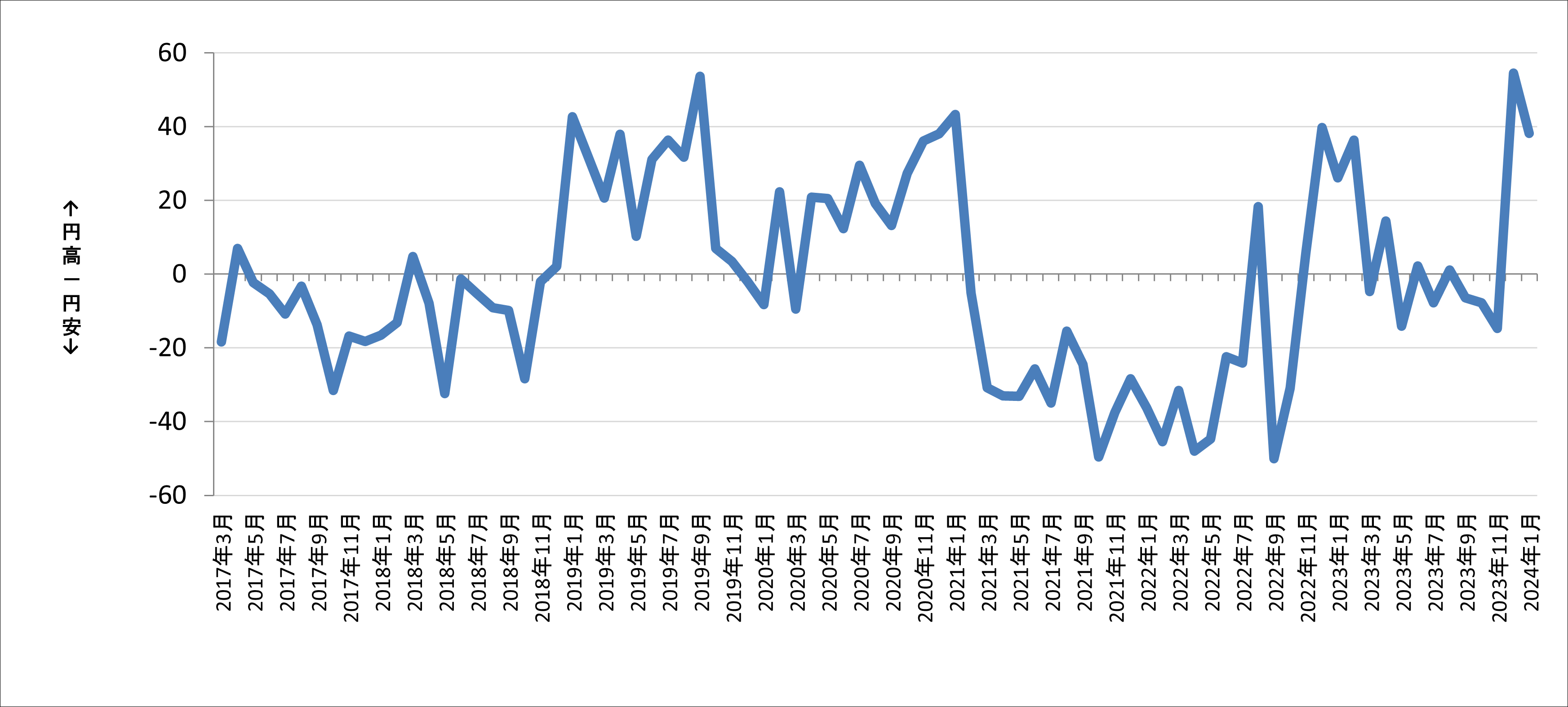 ■ドル円DI推移(※ドル円DI=円高ー円安)