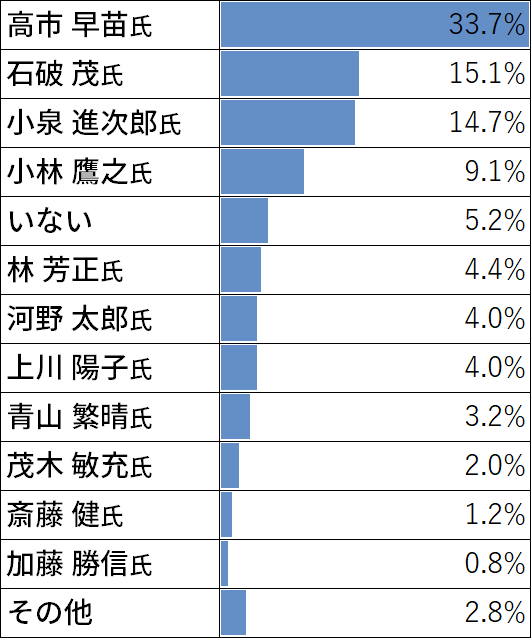 自民党総裁選が9月12日告示-27日投開票の日程で実施されます。あなたは次の自民党総裁として誰がよいと思いますか?