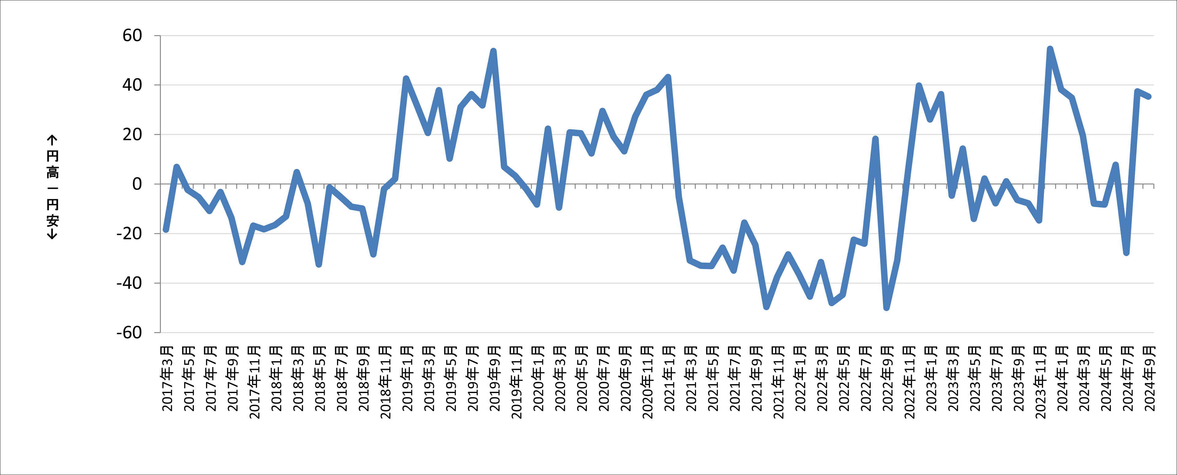 ■ドル円DI推移(※ドル円DI=円高ー円安)