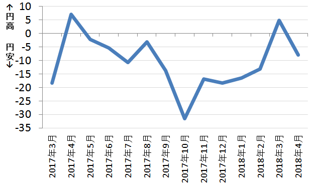 ■ドル円DI推移(※ドル円DI=円高ー円安)