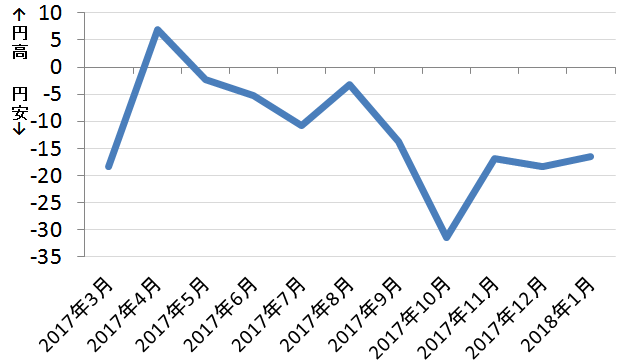 ■ドル円DI推移(※ドル円DI=円高ー円安)