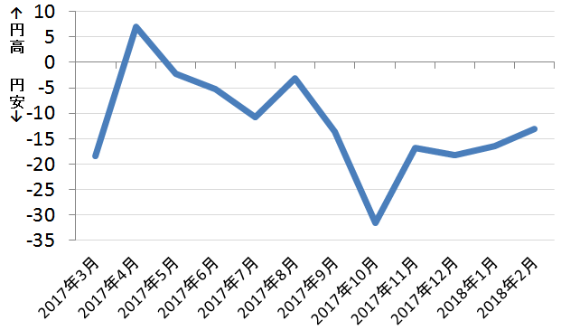■ドル円DI推移(※ドル円DI=円高ー円安)