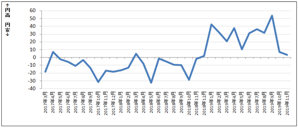 ■ドル円DI推移(※ドル円DI=円高ー円安)