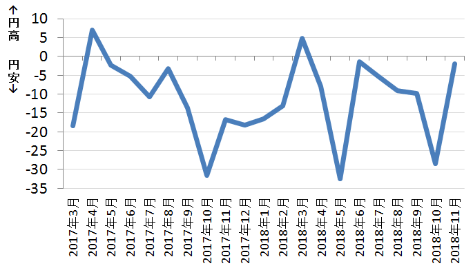 ■ドル円DI推移(※ドル円DI=円高ー円安)
