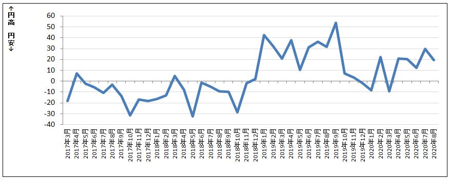 ■ドル円DI推移(※ドル円DI=円高ー円安)