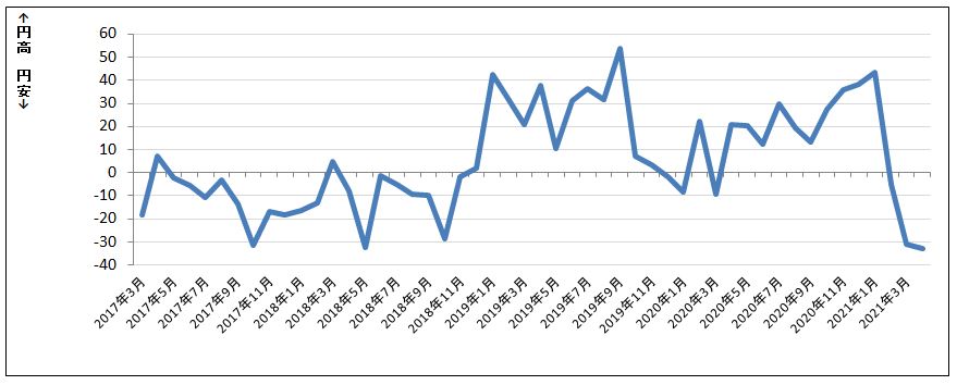 ■ドル円DI推移(※ドル円DI=円高ー円安)