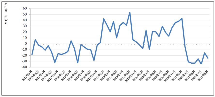 ■ドル円DI推移(※ドル円DI=円高ー円安)