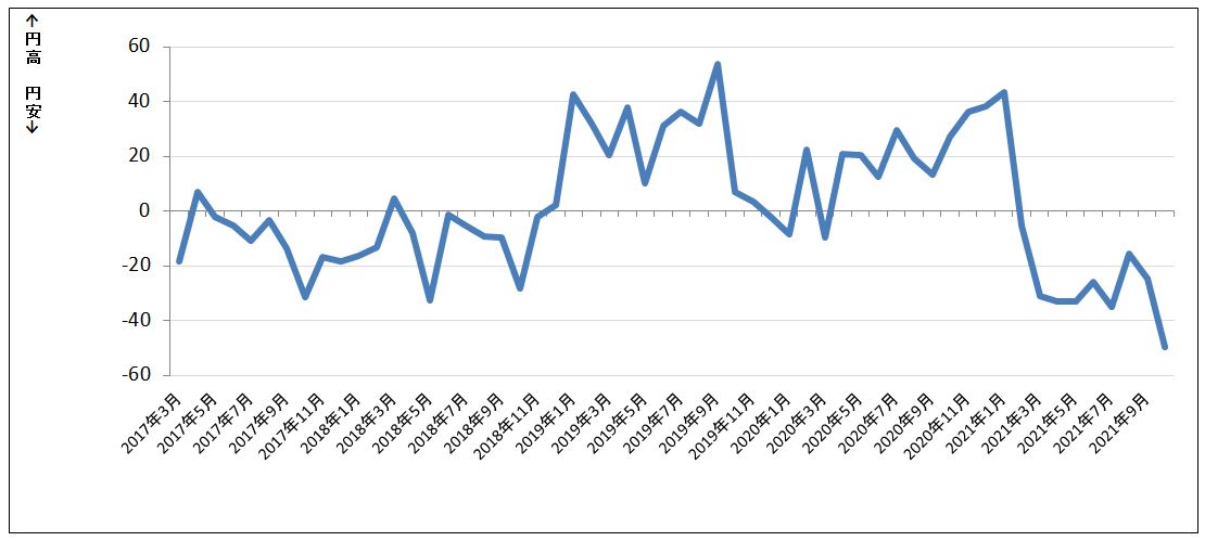 ■ドル円DI推移(※ドル円DI=円高ー円安)