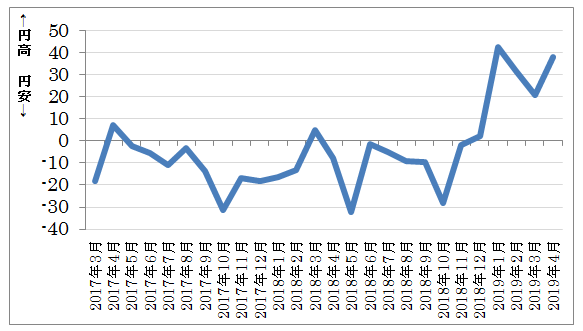 ■ドル円DI推移(※ドル円DI=円高ー円安)