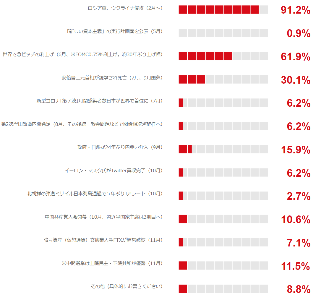 ・<ロシア軍、ウクライナ侵攻/世界で急ピッチの利上げ/その他(=新冷戦構造の深化) を選択>