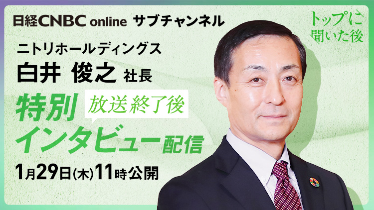 1月29日(木) 11:00~「トップに聞いた後~ニトリホールディングス 白井俊之社長」日経CNBC onlineサブチャンネルで配信