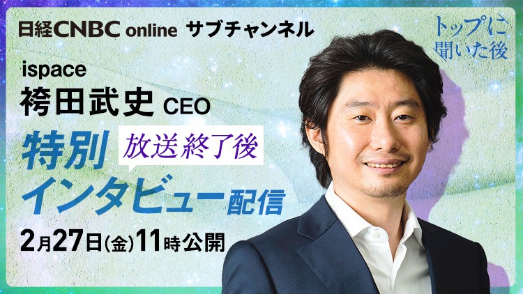 2月27日(金) 11:00~「トップに聞いた後~ispace 袴田武史CEO」日経CNBC onlineサブチャンネルで配信