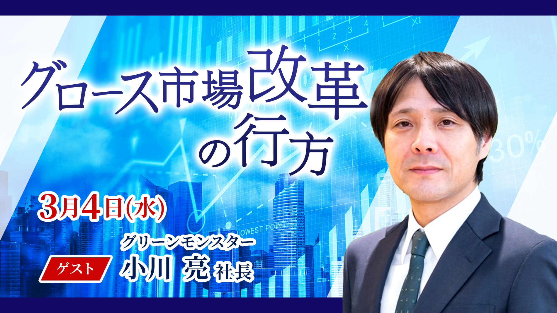 3月4日(水)「グロース市場改革の行方」(ゲスト:グリーンモンスター 小川 亮社長)